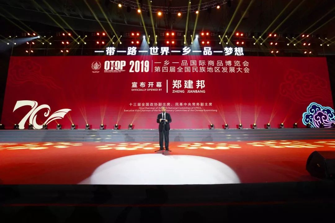 第十三届全国政协副主席、民革中央常务副主席郑建邦宣布,2019一乡一品国际商品博览会暨第四届全国民族地区发展大会开幕。