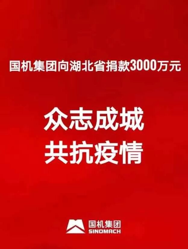 为进一步支持湖北省抗击疫情,1月28日,国机集团向湖北省捐款3000万元,以国机大爱和守望相助精神助力早日打赢这场没有硝烟的战役。